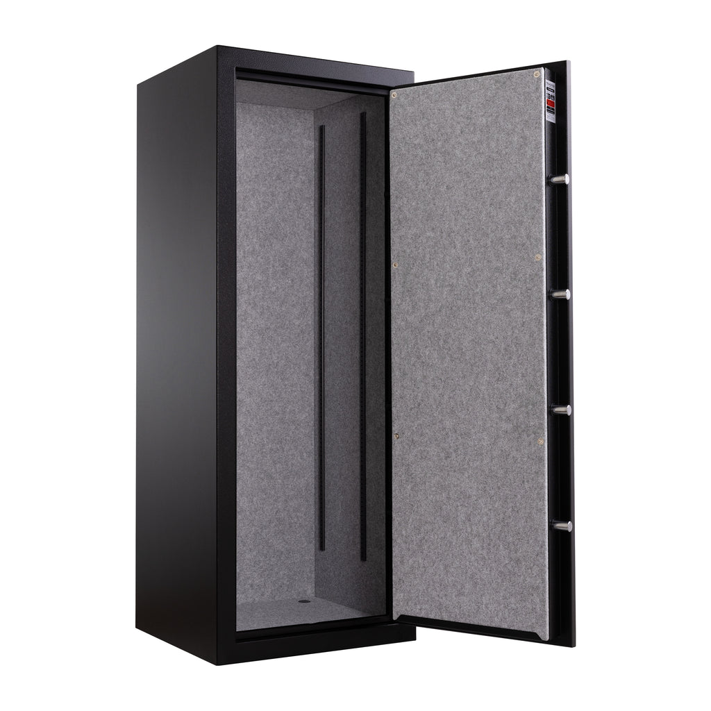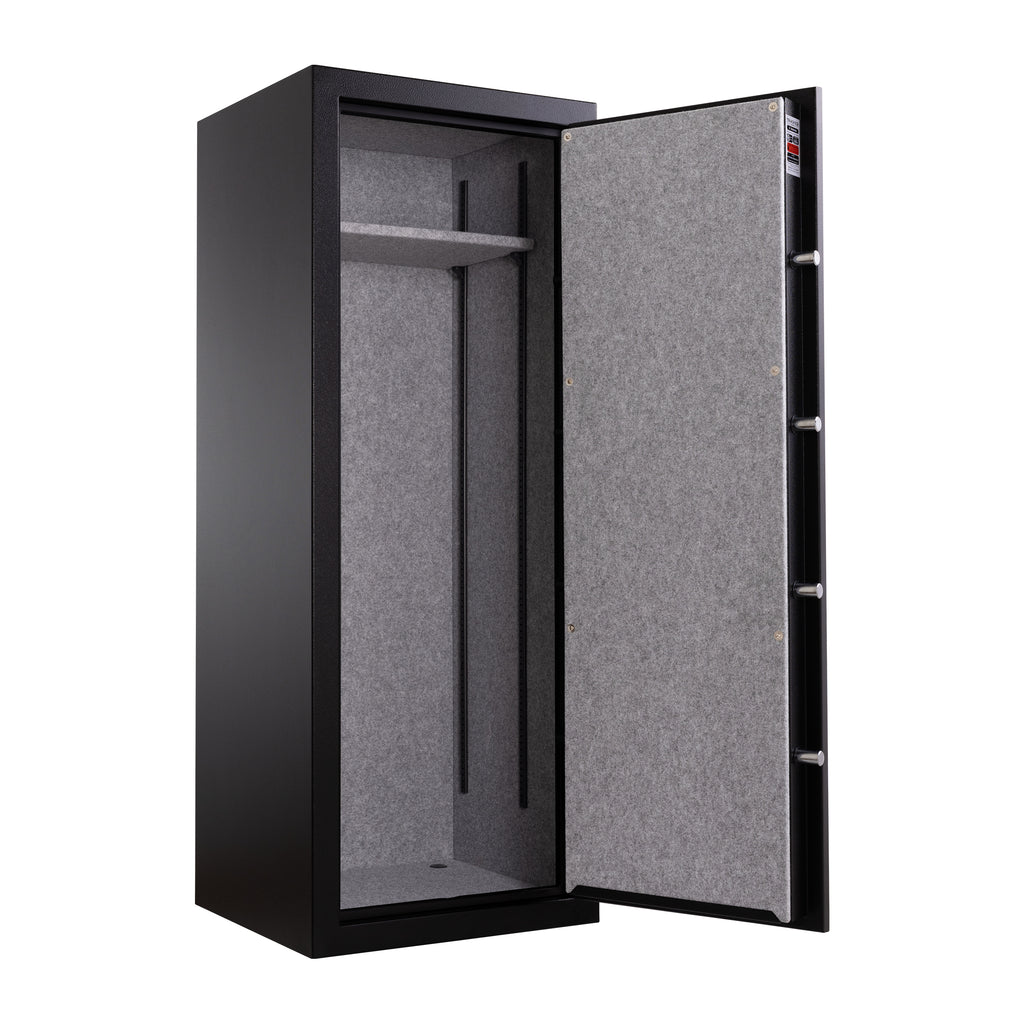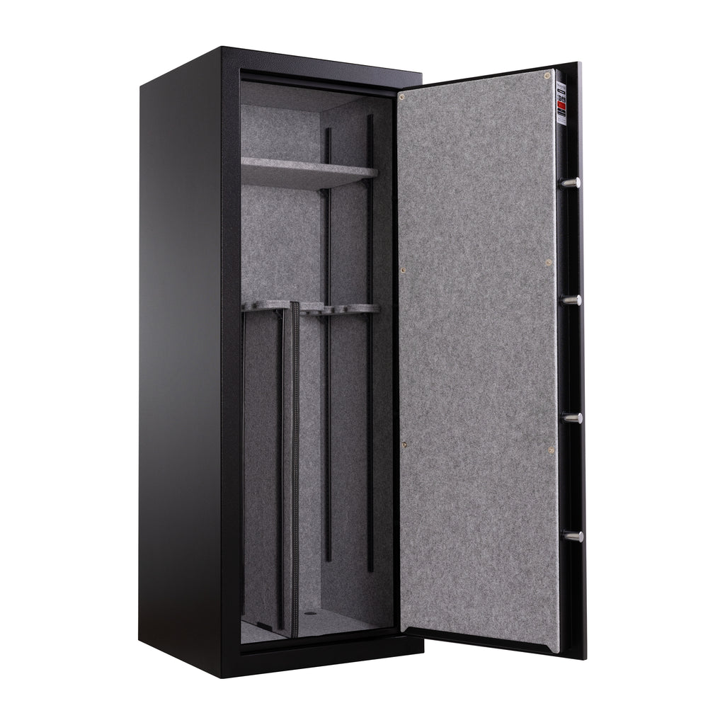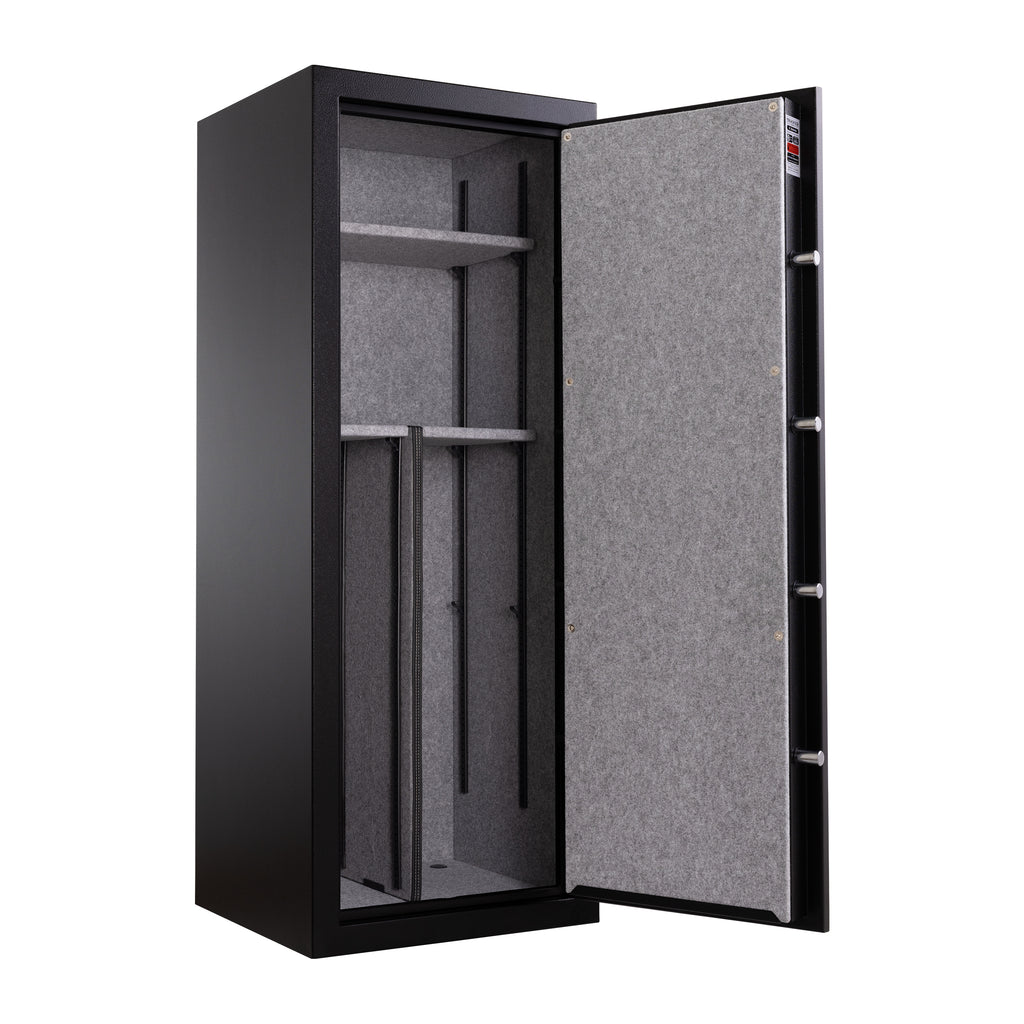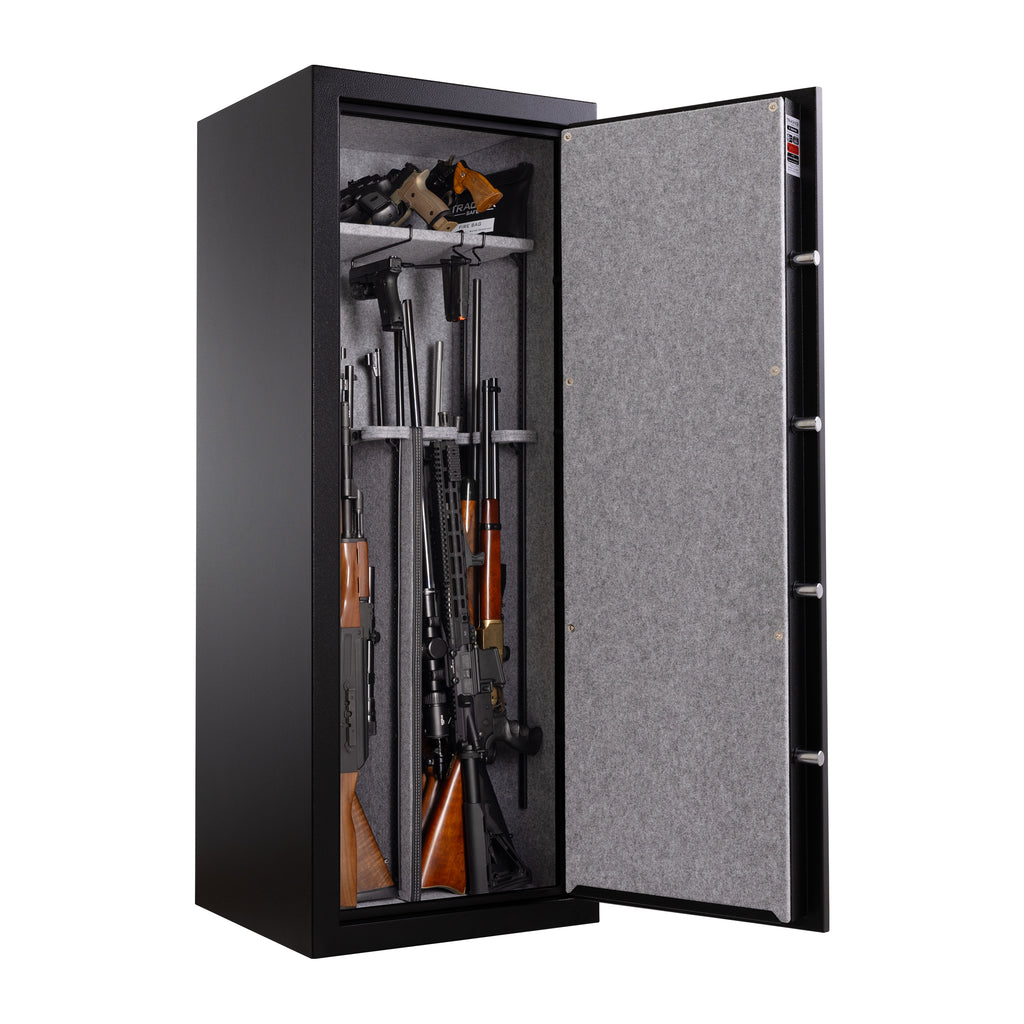 - Attack resistant external hinges that allow the door to open 200 degrees, unlike safes with internal hinges